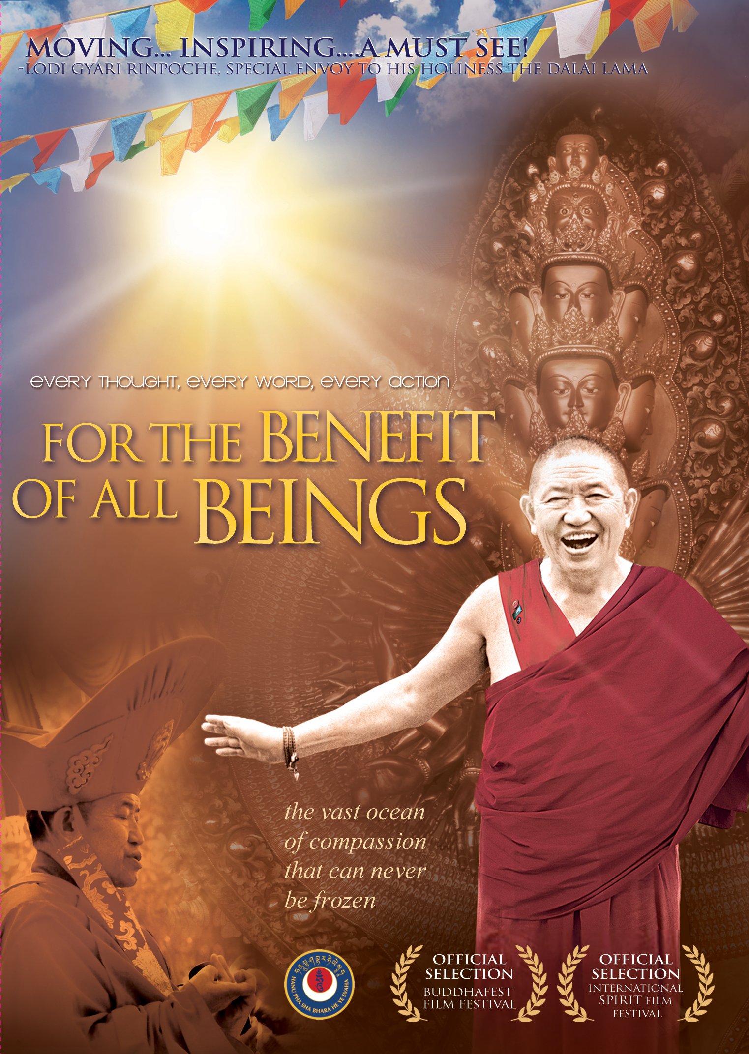 Written, edited, and directed by Christina Lundberg, For the Benefit of All Beings (2013) is a documentary telling the life story of His Eminence Garchen Triptrul Rinpoche, a recognized incarnation of Aryadeva and one of the foremost Tibetan lamas living today. Born in 1936, Garchen Rinpoche fought during the 1959 Tibetan uprising in order to protect His Holiness the Dalai Lama. He was captured and imprisoned for 20 years, enduring extreme hardship in a Chinese prison where he met his root guru, the great Nyingma master Khenpo Munsel. This illuminating documentary traces Rinpoche’s remarkable story, sharing details of his confinement and his practice as it developed under Munsel’s spiritual guidance. The film shows how Garchen Rinpoche fearlessly returned to Tibet 20 years later to restore Buddhist practice and build schools among communities that had become impoverished and illiterate since his imprisonment—and how he established centers throughout the world to foster Buddhist study and practice. Directed by an accomplished filmmaker (Mystic Tibet, Discovering Buddhism, Maitreya Project), this documentary offers an extraordinarily detailed and moving account of this Buddhist lineage master. Running time: 100 minutes.